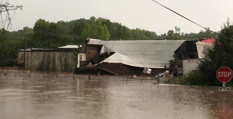 The back wall of the business, located at 2020 Fairystone Park Highway, collapsed.